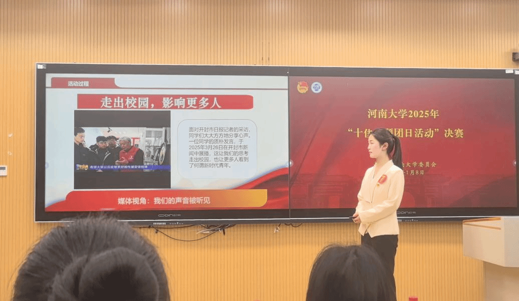 在决赛答辩中,团支书李依桐从“为什么出发、如何准备、流程亮点、反思展望”四个层面系统汇报了本次活动。她阐释了活动源于对新时代青年责任的认识,介绍了支部前期充分调研与统筹准备的过程,重点说明了赴开封雷锋纪念馆参观学习、打造团支部长期坚持的“螺丝钉”志愿服务品牌等环节的设计思路与实际成效,并诚恳总结了经验与未来计划。汇报逻辑清晰、应答从容,展现了扎实的组织工作和显著的育人效果,引导团员在沉浸式学习与真实服务中深化了对雷锋精神的理解,提升了思想觉悟与实践能力,实现了个人成长与集体发展的融合促进。