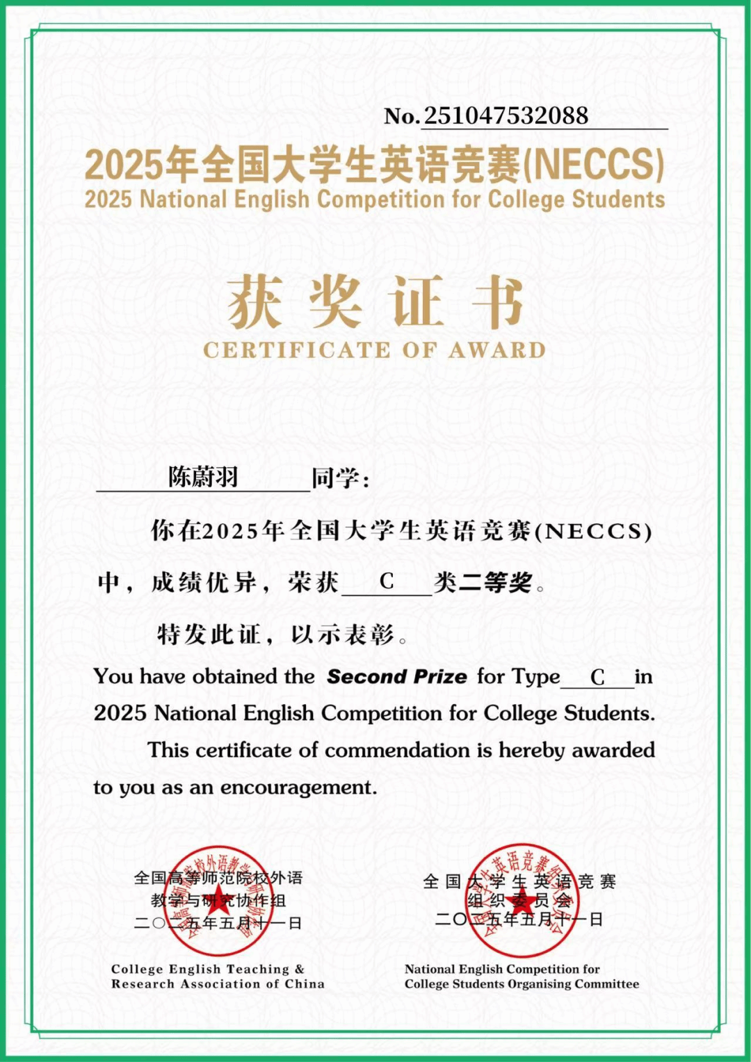 未来的路还很长,陈蔚羽深知,眼前的成绩只是起点,而非终点。他将继续以热爱为笔,以奋斗为墨以担当为帆,牢记党员的使命,用所学的专业知识为国家科技发展贡献青春力量。