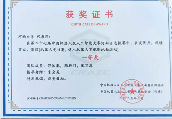 在学科竞赛的赛场上,陈蔚羽同样表现出色。他积极参加各类比赛,不断提升自身的实践能力与创新思维。他主动组建团队,主动钻研竞赛课题,在一次次的讨论、实践与打磨中,攻克一个又一个技术难关。凭借扎实的专业知识和出色的实践能力,获得全国大学生英语竞赛C类二等奖、大学生智能技术应用大赛全国一等奖、中国机器人及人工智能大赛省级一等奖等荣誉。这些成绩不仅是对他个人能力的肯定,更是他不断挑战自我、追求卓越的见证。